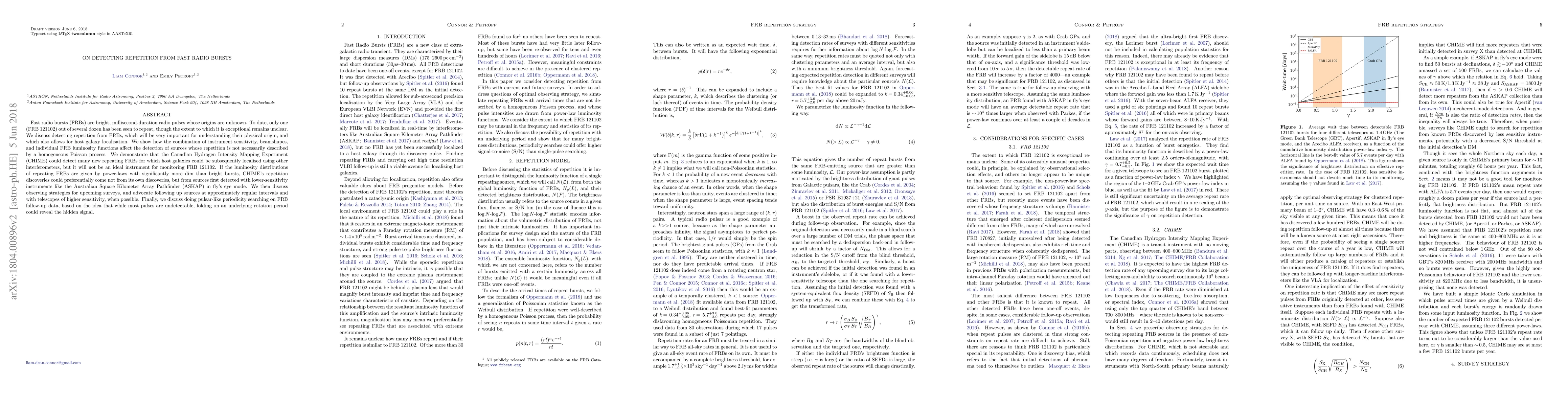 Fast radio bursts (FRBs) are bright, millisecond-duration radio pulses whose origins are unknown. To date, only one (FRB 121102) out of several dozen has been seen to repeat, though the extent to which it is exceptional remains unclear. We discuss detecting repetition from FRBs, which will be very important for understanding their physical origin, and which also allows for host galaxy localisation. We show how the combination of instrument sensitivity, beamshapes, and individual FRB luminosity functions affect the detection of sources whose repetition is not necessarily described by a homogeneous Poisson process. We demonstrate that the Canadian Hydrogen Intensity Mapping Experiment (CHIME) could detect many new repeating FRBs for which host galaxies could be subsequently localised using other interferometers, but it will not be an ideal instrument for monitoring FRB 121102. If the luminosity distributions of repeating FRBs are given by power-laws with significantly more dim than bright bursts, CHIME's repetition discoveries could preferentially come not from its own discoveries, but from sources first detected with lower-sensitivity instruments like the Australian Square Kilometer Array Pathfinder (ASKAP) in fly's eye mode. We then discuss observing strategies for upcoming surveys, and advocate following up sources at approximately regular intervalsand with telescopes of higher sensitivity, when possible. Finally, we discuss doing pulsar-like periodicity searching on FRB follow-up data, based on the idea that while most pulses are undetectable, folding on an underlying rotation period could reveal the hidden signal.