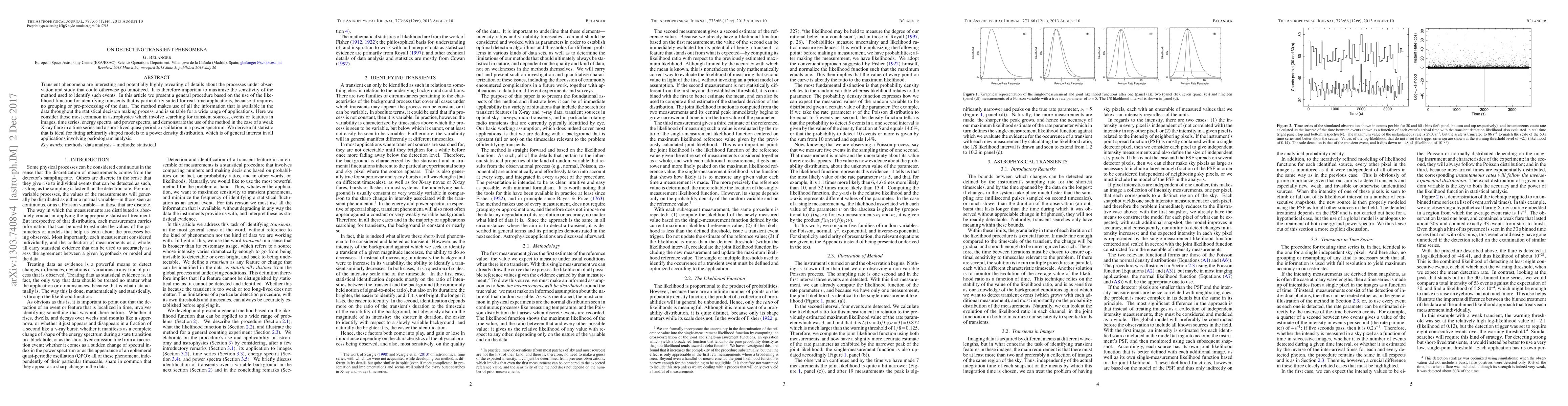 This paper presents a method for detecting transient phenomena using likelihood functions, suitable for real-time applications and with implications for various fields including astrophysics.