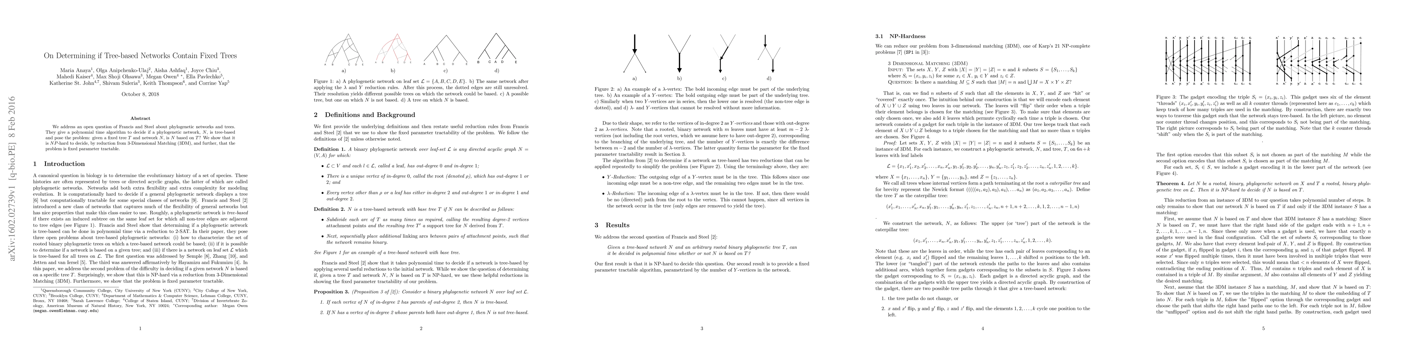 We address an open question of Francis and Steel about phylogenetic networks and trees. They give a polynomial time algorithm to decide if a phylogenetic network, N, is tree-based and pose the problem: given a fixed tree T and network N, is N based on T? We show that it is NP-hard to decide, by reduction from 3-Dimensional Matching (3DM), and further, that the problem is fixed parameter tractable.