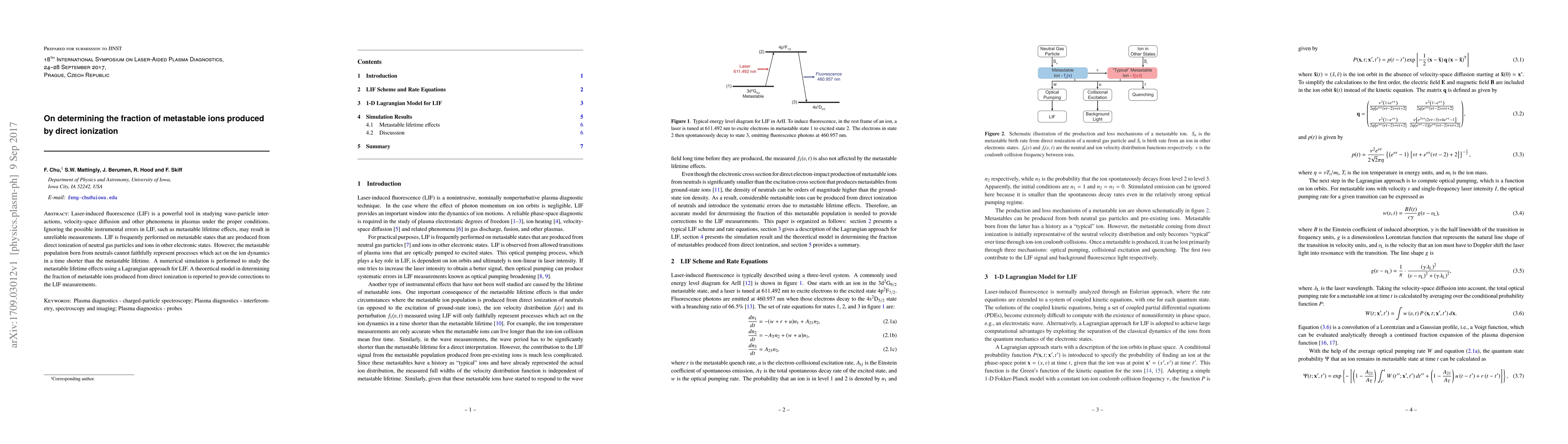 Researchers developed a numerical simulation to study metastable lifetime effects in laser-induced fluorescence (LIF) measurements, providing corrections for direct ionization of neutral gas particles and ions.
