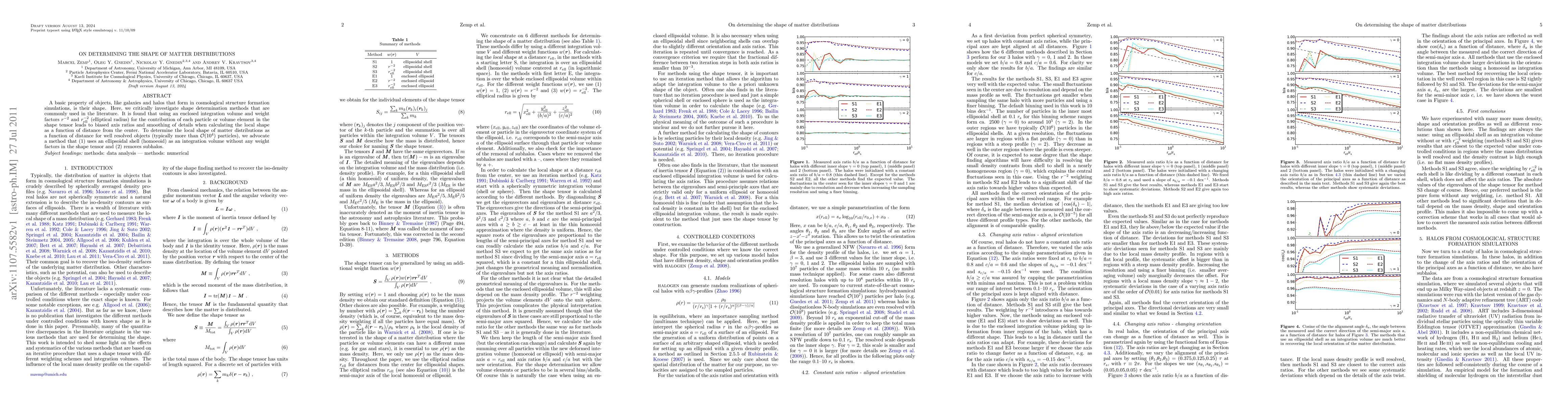 A basic property of objects, like galaxies and halos that form in cosmological structure formation simulations, is their shape. Here, we critically investigate shape determination methods that are commonly used in the literature. It is found that using an enclosed integration volume and weight factors r^{-2} and r_{ell}^{-2} (elliptical radius) for the contribution of each particle or volume element in the shape tensor leads to biased axis ratios and smoothing of details when calculating the local shape as a function of distance from the center. To determine the local shape of matter distributions as a function of distance for well resolved objects (typically more than O(10^4) particles), we advocate a method that (1) uses an ellipsoidal shell (homoeoid) as an integration volume without any weight factors in the shape tensor and (2) removes subhalos.