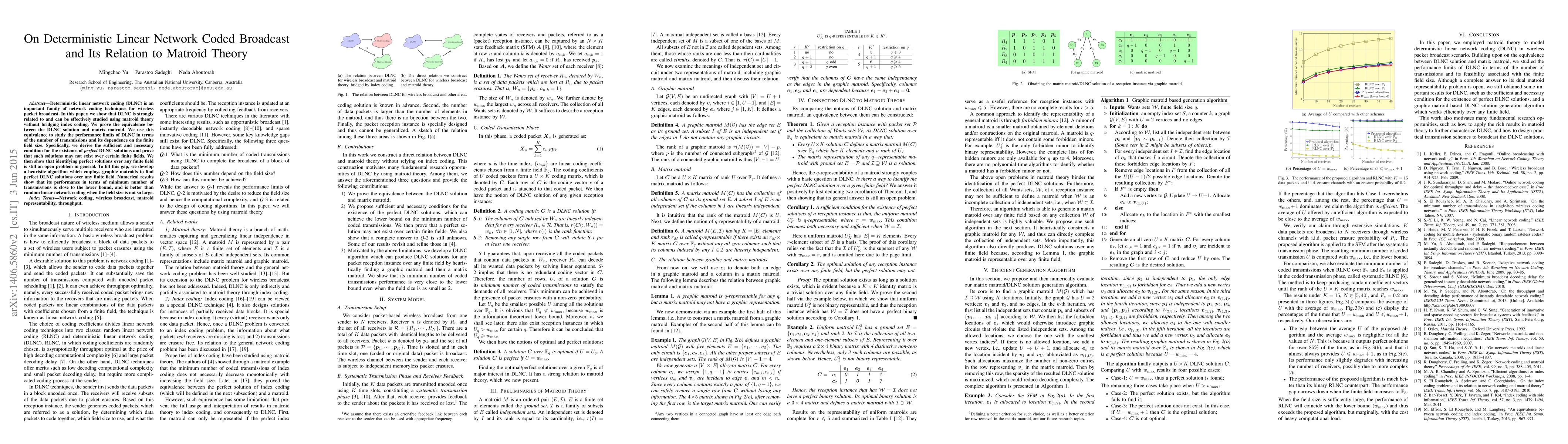 Deterministic linear network coding (DLNC) is an important family of network coding techniques for wireless packet broadcast. In this paper, we show that DLNC is strongly related to and can be effectively studied using matroid theory without bridging index coding. We prove the equivalence between the DLNC solution and matrix matroid. We use this equivalence to study the performance limits of DLNC in terms of the number of transmissions and its dependence on the finite field size. Specifically, we derive the sufficient and necessary condition for the existence of perfect DLNC solutions and prove that such solutions may not exist over certain finite fields. We then show that identifying perfect solutions over any finite field is still an open problem in general. To fill this gap, we develop a heuristic algorithm which employs graphic matroids to find perfect DLNC solutions over any finite field. Numerical results show that its performance in terms of minimum number of transmissions is close to the lower bound, and is better than random linear network coding when the field size is not so large.