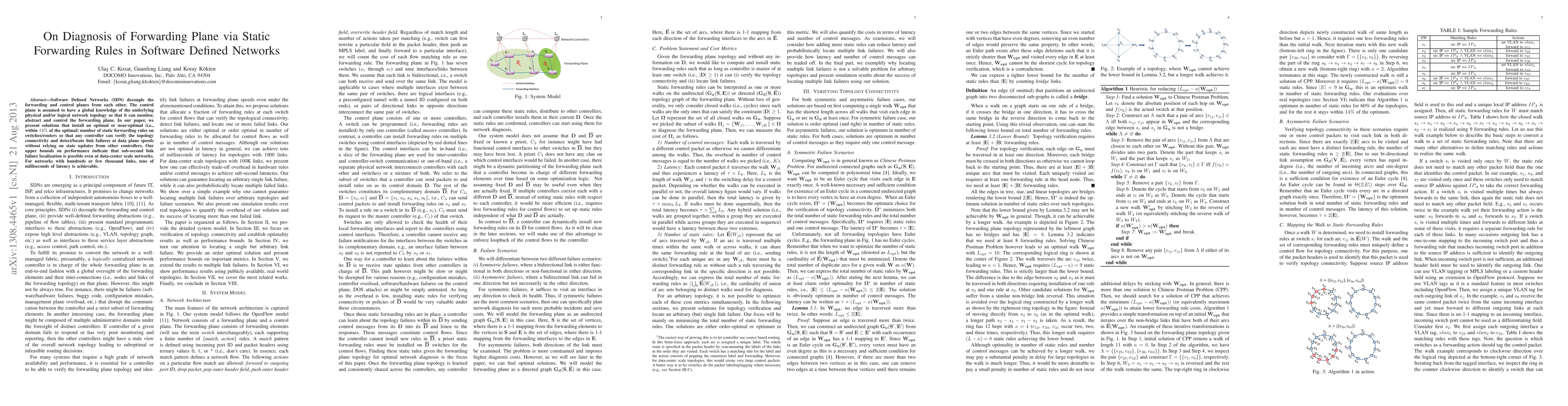 This paper proposes solutions for installing an optimal number of static forwarding rules in SDN switches to allow controllers to verify network connectivity and detect link failures at data plane speeds, achieving sub-second failure localization in large data-center networks with tens of milliseconds latency for smaller networks.
