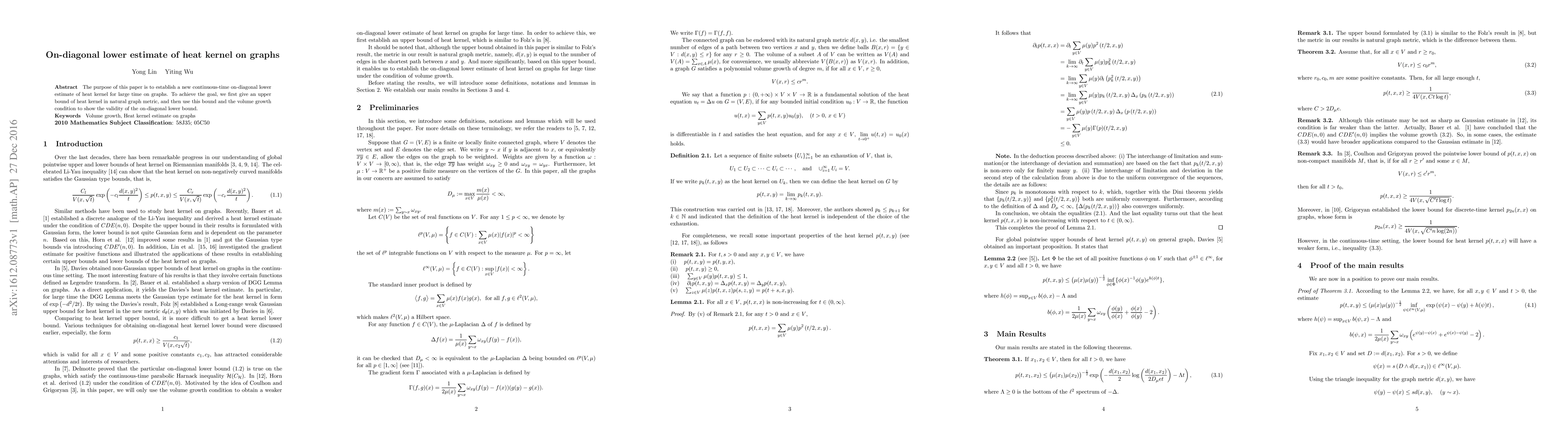 This paper establishes a new continuous-time on-diagonal lower estimate of the heat kernel for large times on graphs, leveraging an upper bound of the heat kernel in the natural graph metric and the volume growth condition to validate the lower bound.