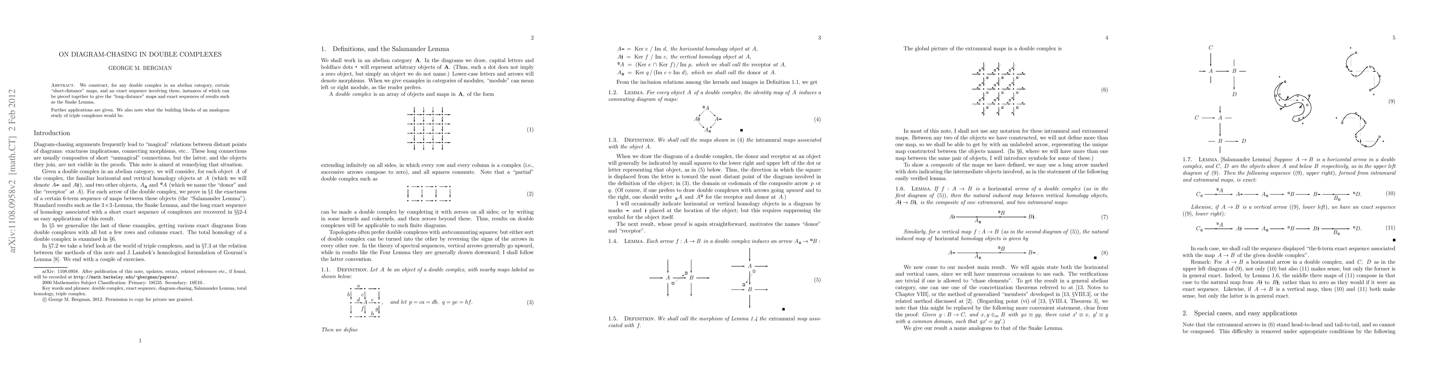 Diagram-chasing arguments frequently lead to "magical" relations between distant points of diagrams: exactness implications, connecting morphisms, etc.. These long connections are usually composites of short "unmagical" connections, but the latter, and the objects they join, are not visible in the proofs. I try to remedy this situation. Given a double complex in an abelian category, we consider, for each object A of the complex, the familiar horizontal and vertical homology objects at A, and two other objects, which we name the "donor" A_{\box} and and the "receptor" ^{\box}A at A. For each arrow of the double complex, we prove the exactness of a 6-term sequence of these objects (the "Salamander Lemma"). Standard results such as the 3x3-Lemma, the Snake Lemma, and the long exact sequence of homology associated with a short exact sequence of complexes, are obtained as easy applications of this lemma. We then obtain some generalizations of the last of the above examples, getting various exact diagrams from double complexes with all but a few rows and columns exact. The total homology of a double complex is also examined in terms of the constructions we have introduced. We end with a brief look at the world of triple complexes, and two exercises.