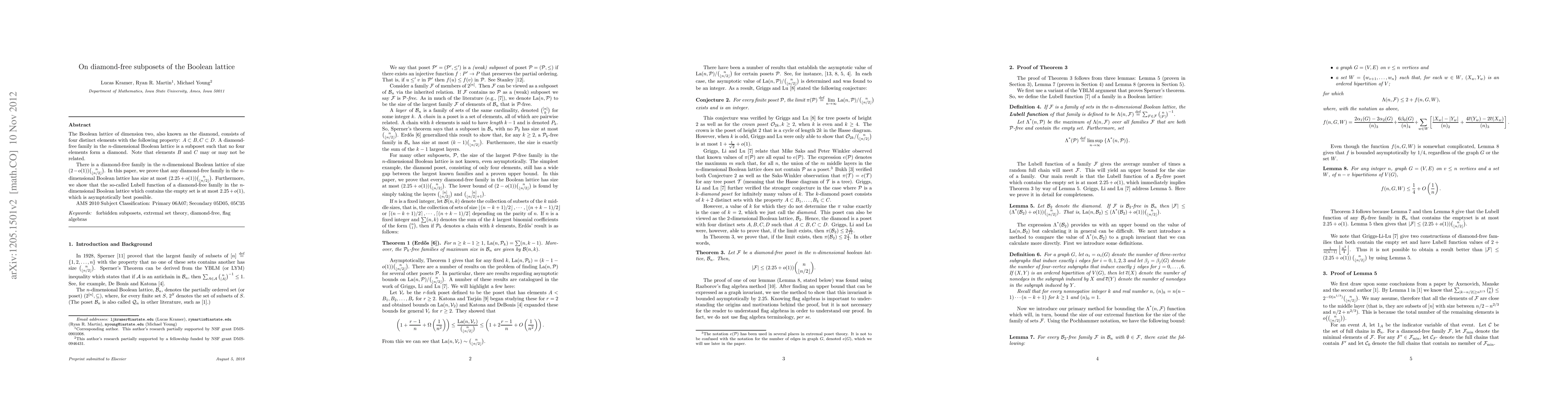 This paper investigates diamond-free subposets in the $n$-dimensional Boolean lattice, proving that any such subposet has size at most $(2.25+o(1)){n\choose\lfloor n/2\rfloor}$ and demonstrating that the Lubell function for these subposets is at most $2.25+o(1)$.