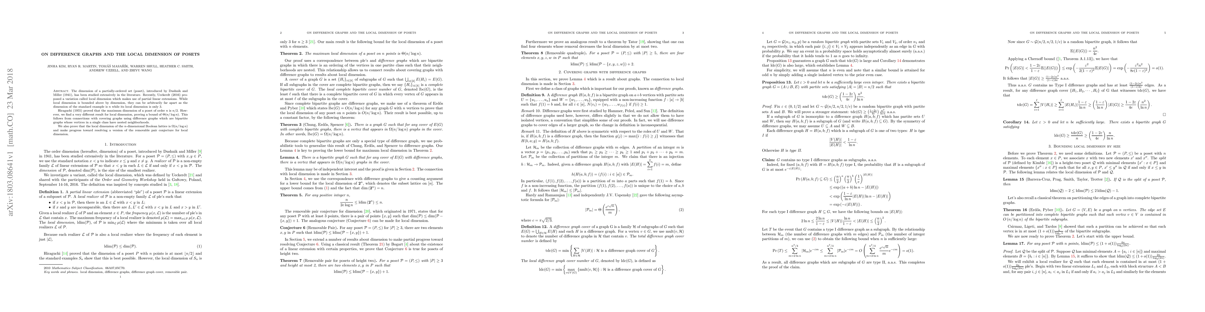 Researchers found a bound of Theta(n/log n) for the local dimension of posets, contrasting with the previously known bound of n/2 for dimension, and making progress toward resolving a conjecture about removable pairs.