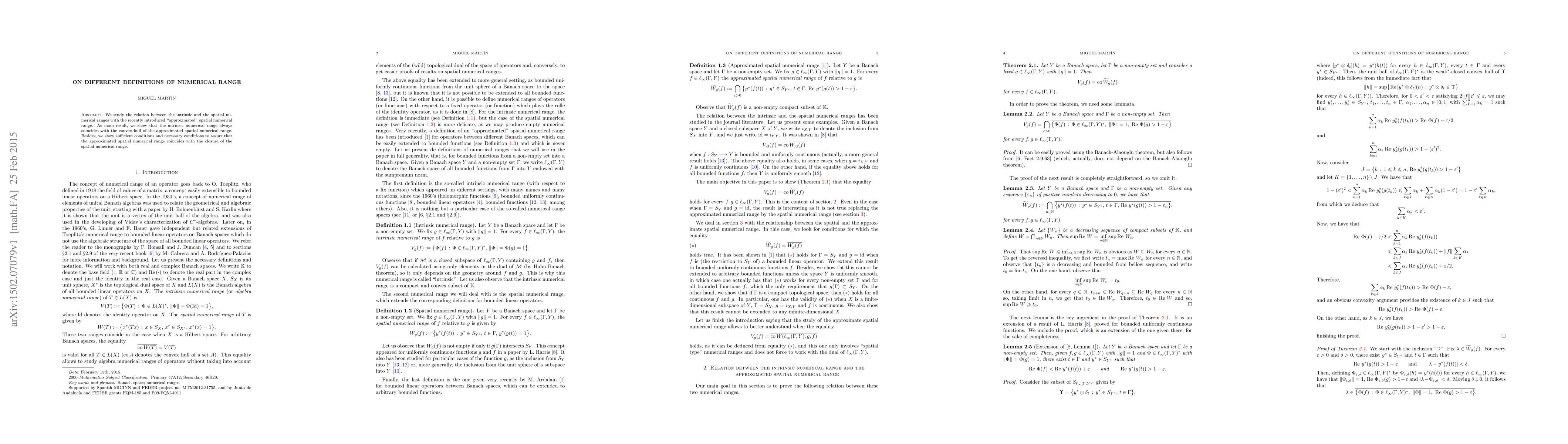 We study the relation between the intrinsic and the spatial numerical ranges with the recently introduced "approximated" spatial numerical range. As main result, we show that the intrinsic numerical range always coincides with the convex hull of the approximated spatial numerical range. Besides, we show sufficient conditions and necessary conditions to assure that the approximated spatial numerical range coincides with the closure of the spatial numerical range.