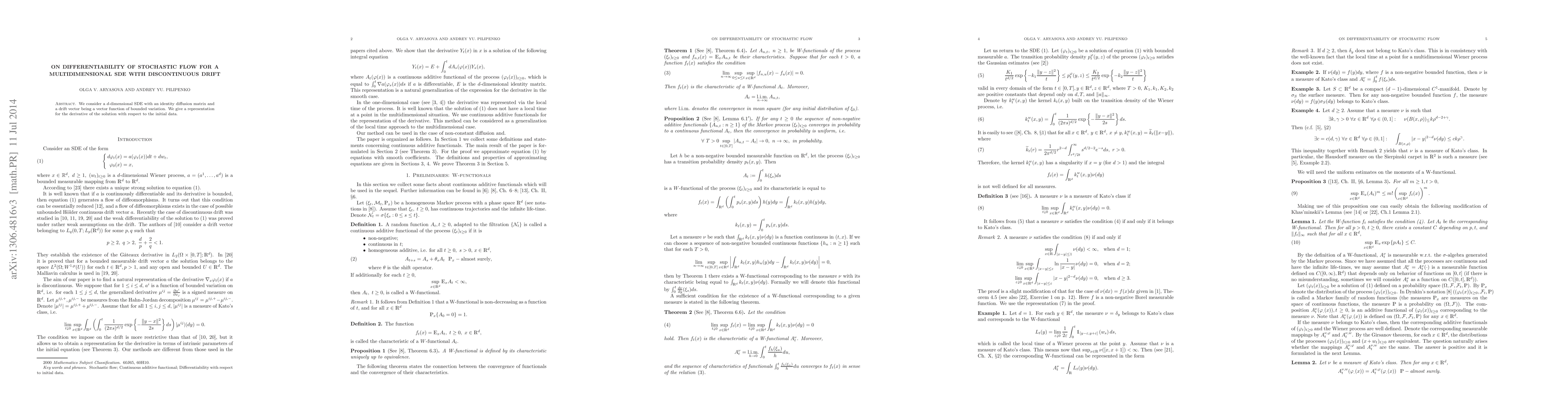 Summary: This paper investigates the differentiability of solutions to a $d$-dimensional stochastic differential equation with discontinuous drift of bounded variation, providing a representation for the derivative concerning the initial conditions.