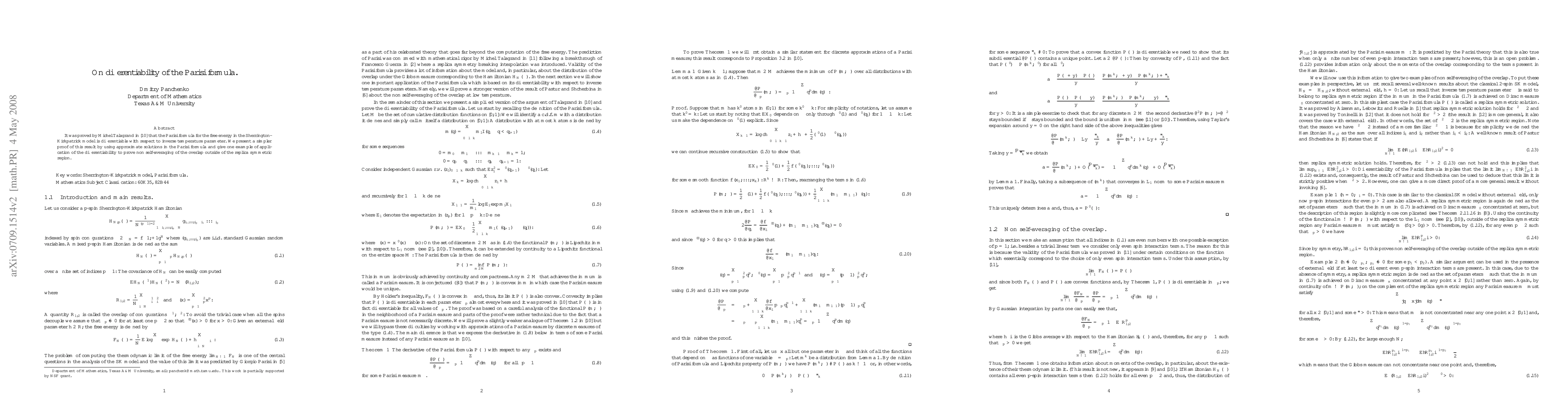 The paper presents a simplified proof of the differentiability of the Parisi formula with respect to the inverse temperature parameter, utilizing approximate solutions and Lipschitz continuity.