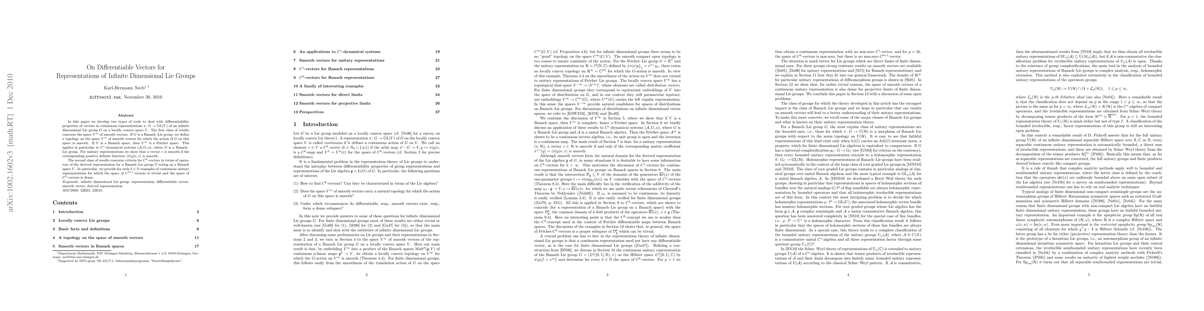 This paper develops tools for studying differentiability in continuous representations of infinite-dimensional Lie groups on locally convex spaces, defining a topology on smooth vectors and providing criteria for $C^k$-vectors, with applications to $C^*$-dynamical systems and unitary representations.