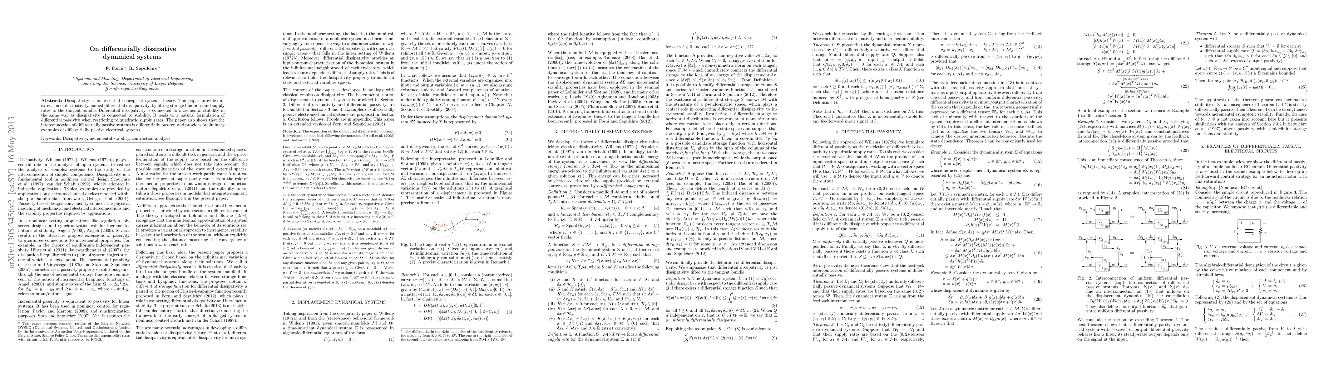 Dissipativity is an essential concept of systems theory. The paper provides an extension of dissipativity, named differential dissipativity, by lifting storage functions and supply rates to the tangent bundle. Differential dissipativity is connected to incremental stability in the same way as dissipativity is connected to stability. It leads to a natural formulation of differential passivity when restricting to quadratic supply rates. The paper also shows that the interconnection of differentially passive systems is differentially passive, and provides preliminary examples of differentially passive electrical systems.
