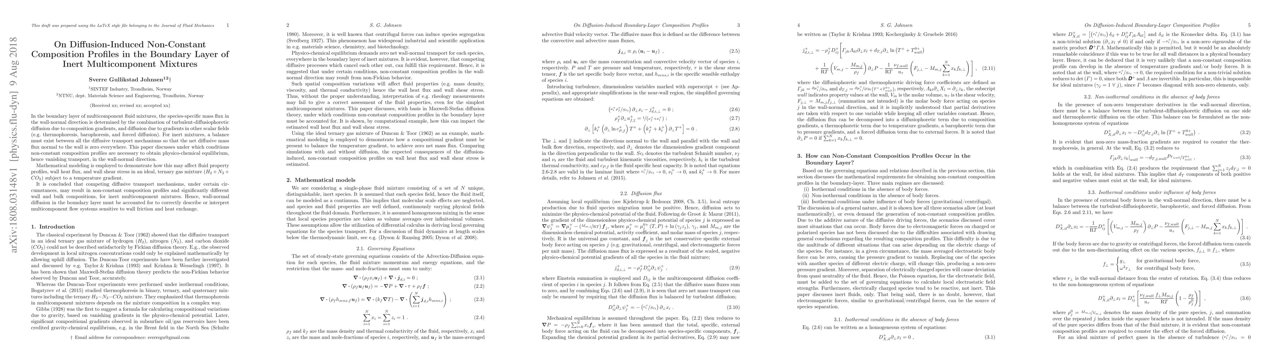 This paper investigates the conditions under which non-constant composition profiles arise in the boundary layer of inert multicomponent mixtures due to competing diffusive transport mechanisms, demonstrating their impact on fluid property profiles, wall heat flux, and shear stress using a ternary gas mixture model. It concludes that non-constant profiles are necessary for achieving equilibrium in such systems, highlighting the importance of considering wall-normal diffusion in multicomponent flow analysis.