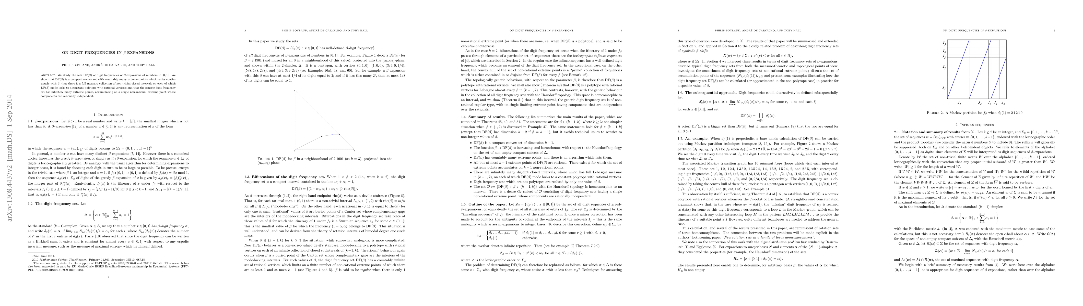 This paper investigates the digit frequency sets DF({\beta}) of {\beta}-expansions for numbers in [0,1], demonstrating that DF({\beta}) is a compact convex set with countably many extreme points that varies continuously with {\beta}. It also reveals a full measure collection of intervals where DF({\beta}) locks to a constant polytope with rational vertices, and shows that the generic DF({\beta}) has infinitely many extreme points converging to a single non-rational, rationally independent point.