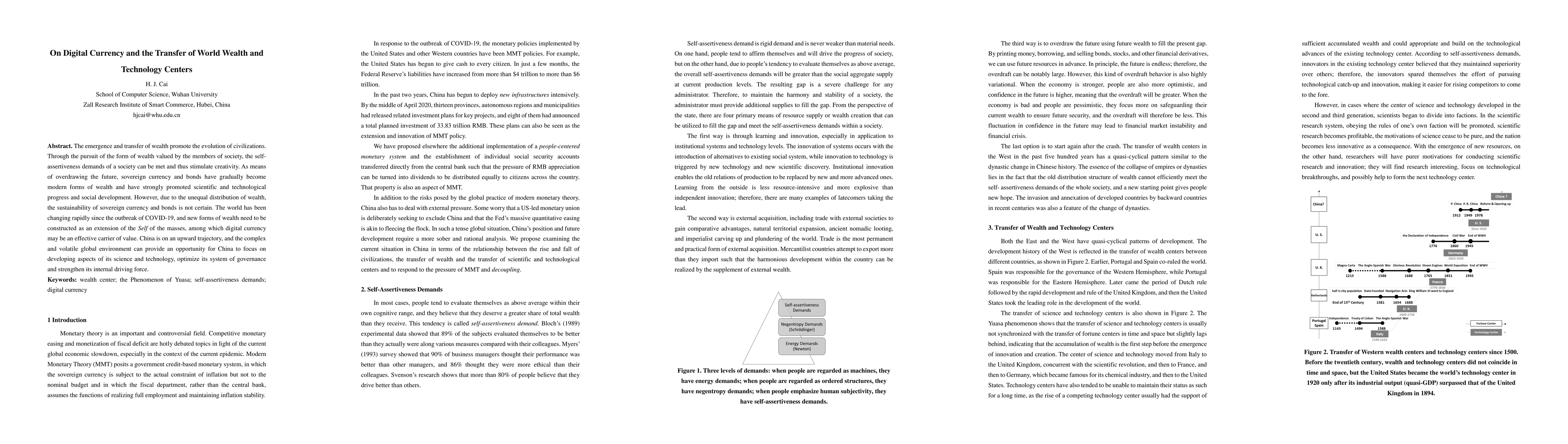 The emergence and transfer of wealth promote the evolution of civilizations. Through the pursuit of the form of wealth valued by the members of society, the self-assertiveness demands of a society can be met and thus stimulate creativity. As means of overdrawing the future, sovereign currency and bonds have gradually become modern forms of wealth and have strongly promoted scientific and technological progress and social development. However, due to the unequal distribution of wealth, the sustainability of sovereign currency and bonds is not certain. The world has been changing rapidly since the outbreak of COVID-19, and new forms of wealth need to be constructed as an extension of the Self of the masses, among which digital currency may be an effective carrier of value. China is on an upward trajectory, and the complex and volatile global environment can provide an opportunity for China to focus on developing aspects of its science and technology, optimize its system of governance and strengthen its internal driving force.