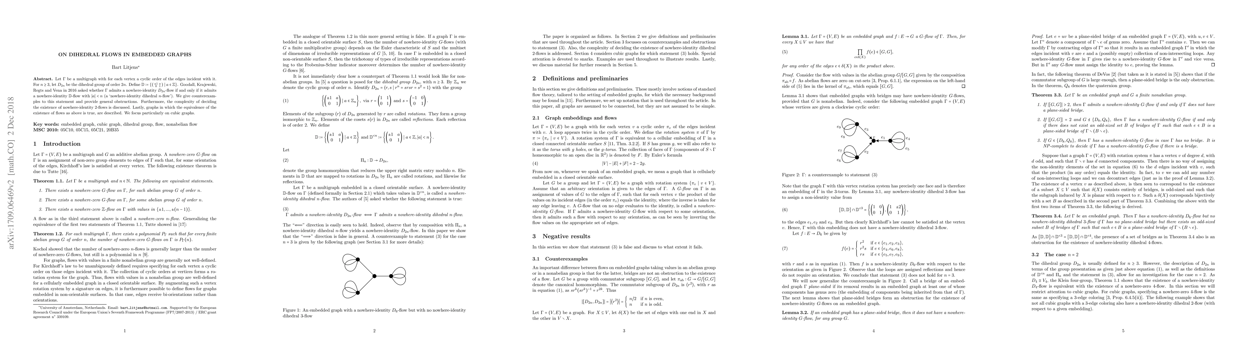 Let $\Gamma$ be a multigraph with for each vertex a cyclic order of the edges incident with it. For $n \geq 3$, let $D_{2n}$ be the dihedral group of order $2n$. Define $\mathbb{D} := \{(\begin{smallmatrix} 1 & a \\ 0 & 1 \end{smallmatrix}) \mid a \in \mathbb{Z}\}$. In [5] it was asked whether $\Gamma$ admits a nowhere-identity $D_{2n}$-flow if and only if it admits a nowhere-identity $\mathbb{D}$-flow with $|a| < n$ (a `nowhere-identity $\mathbb{D}_n$-flow'). We give counterexamples to this statement and provide general obstructions. Furthermore, the complexity of the existence of nowhere-identity $\mathbb{D}_2$-flows is discussed. Lastly, graphs in which the equivalence of the existence of flows as above is true, are described. We focus particularly on cubic graphs.