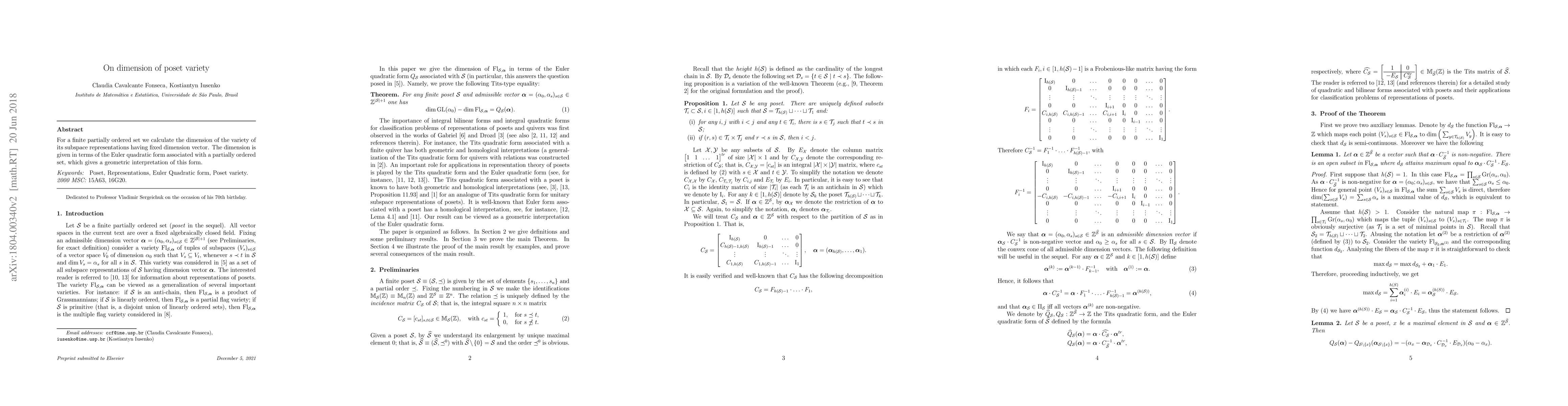 This research paper calculates the dimension of the variety of subspace representations for a finite partially ordered set, given a fixed dimension vector. The dimension is expressed using the Euler quadratic form associated with the partially ordered set, offering a geometric interpretation of this form.