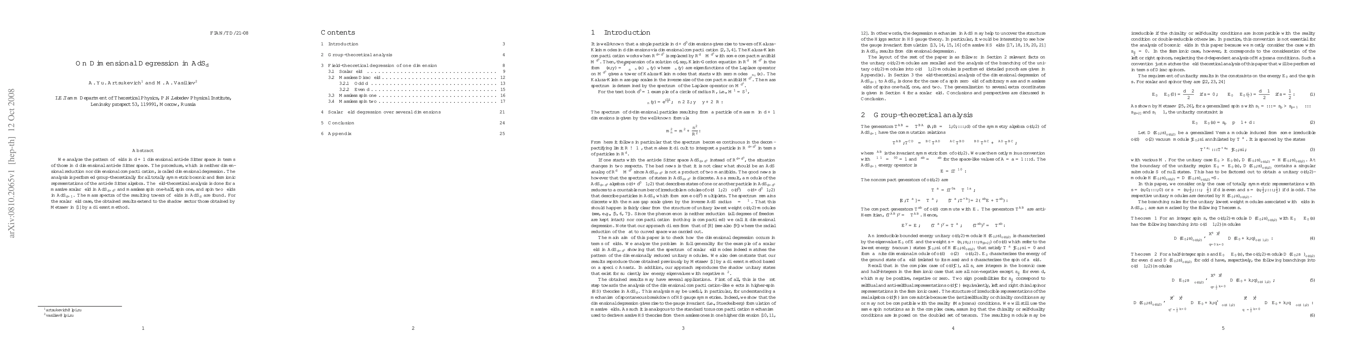 This paper explores the concept of dimensional degression, a novel procedure distinct from reduction or compactification, to analyze fields in d+1 dimensional anti-de Sitter (AdS) space in relation to d-dimensional AdS space. It employs group theory and field theory to determine the mass spectra of various fields, including scalar, spin-one-half, spin-one, and spin-two fields, extending Metsaev's results for scalar fields.