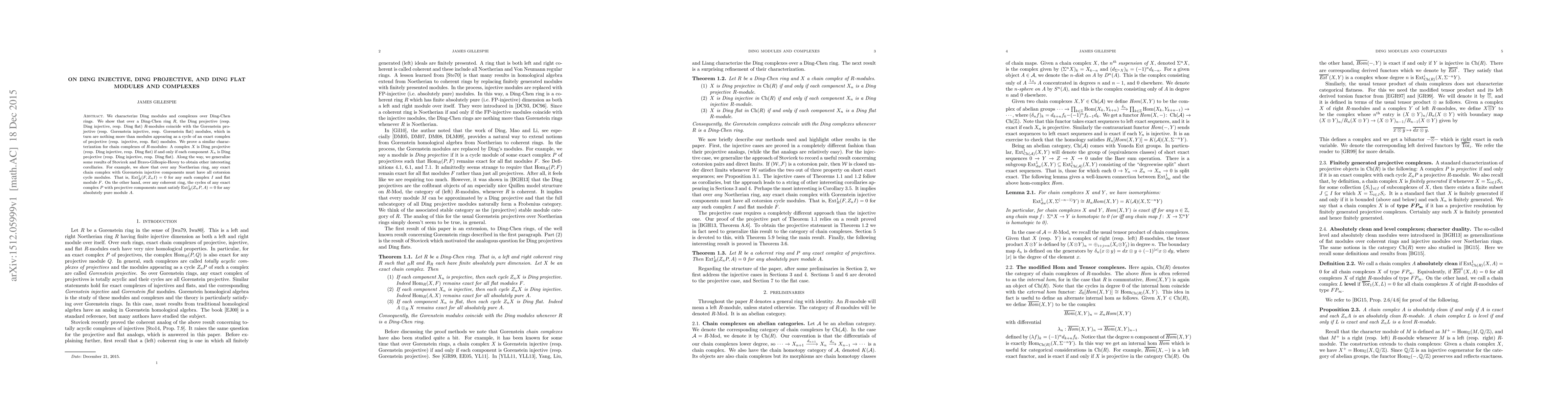 This paper characterizes Ding modules and complexes over Ding-Chen rings, showing that Ding projective, Ding injective, and Ding flat modules correspond to Gorenstein projective, injective, and flat modules, respectively. Additionally, the paper proves that a complex is Ding projective, injective, or flat if each of its components is so, and extends existing results to obtain corollaries on exact chain complexes over Noetherian and coherent rings.