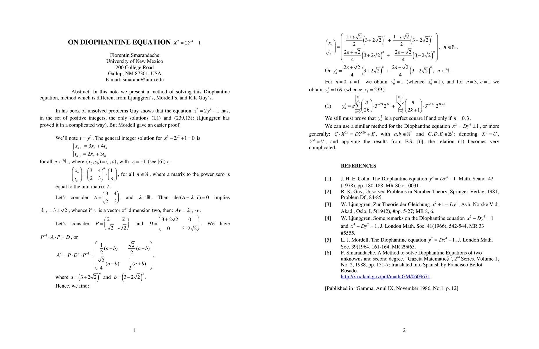 In this short note we present a method of solving this Diophantine equation, method which is different from Ljunggren's, Mordell's, and R.K.Guy's.