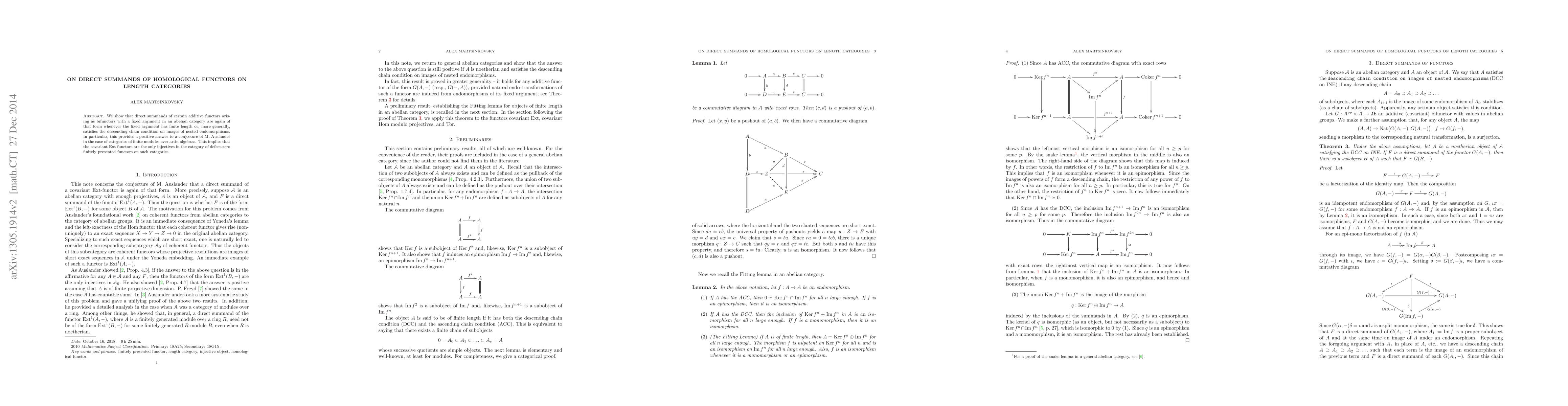 We show that direct summands of certain additive functors arising as bifunctors with a fixed argument in an abelian category are again of that form whenever the fixed argument has finite length or, more generally, satisfies the descending chain condition on images of nested endomorphisms. In particular, this provides a positive answer to a conjecture of M. Auslander in the case of categories of finite modules over artin algebras. This implies that the covariant Ext functors are the only injectives in the category of defect-zero finitely presented functors on such categories.