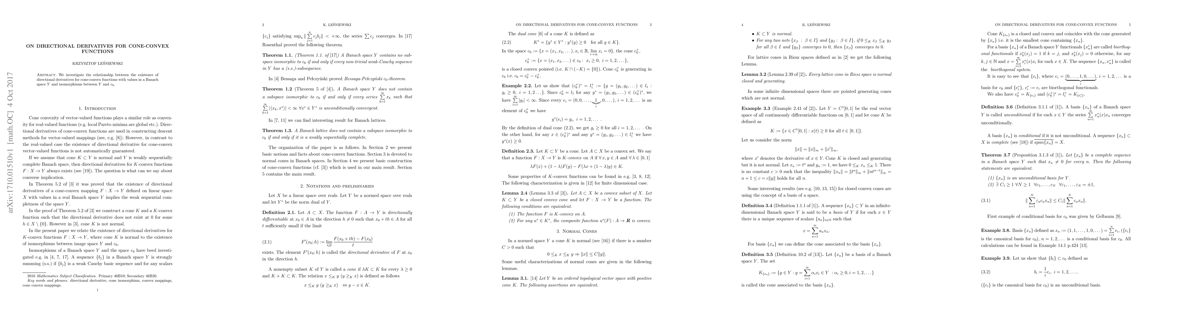 Summary: This paper explores how the existence of directional derivatives in cone-convex functions correlates with the isomorphism between the Banach space Y and the space c0, providing insights into the structure of cone-convexity.