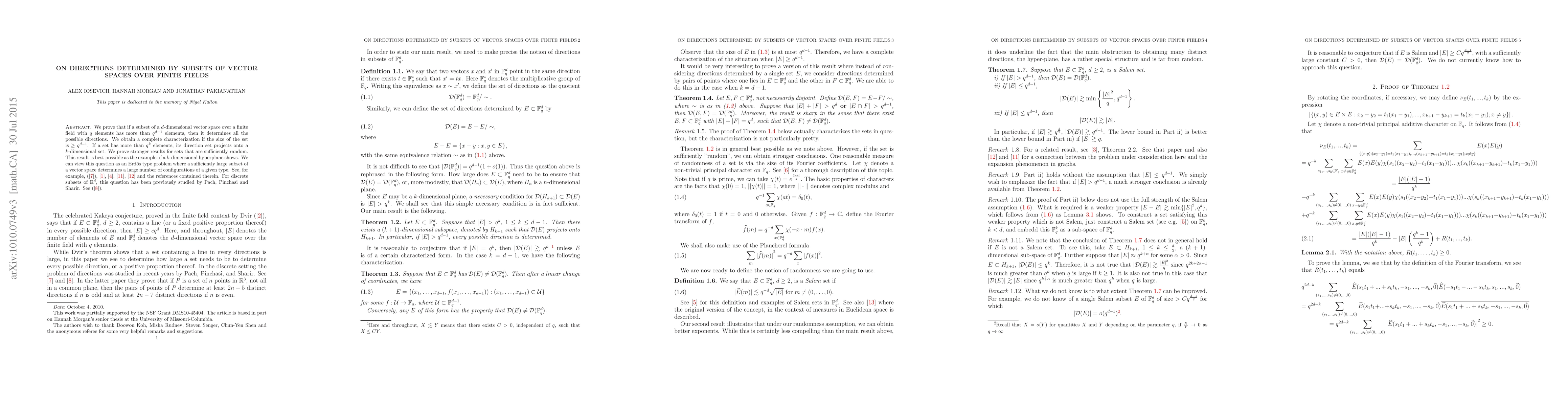 This paper proves that subsets of a $d$-dimensional vector space over a finite field with $q$ elements, having more than $q^{d-1}$ elements, determine all possible directions. It also shows that larger subsets determine higher-dimensional sets of directions, with stronger results for sufficiently random sets.