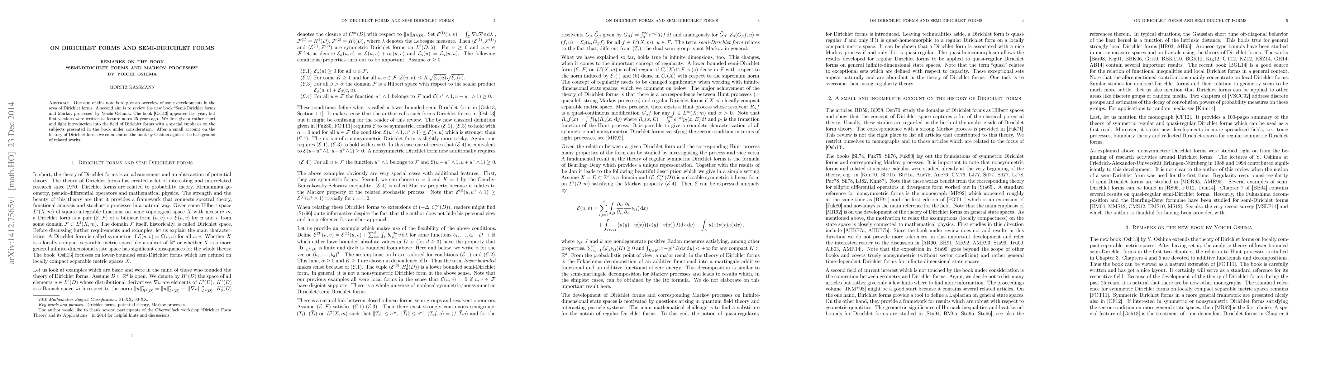One aim of this note is to give an overview of some developments in the area of Dirichlet forms. A second aim is to review the new book "Semi-{D}irichlet forms and {M}arkov processes" by Yoichi Oshima. The book appeared last year, but first versions were written as lecture notes 25 years ago. We first give a rather short and light introduction into the field of Dirichlet forms with a special emphasis on the subjects presented in the book under consideration. After a small account on the history of Dirichlet forms we comment on the book by Oshima against the background of related works.
