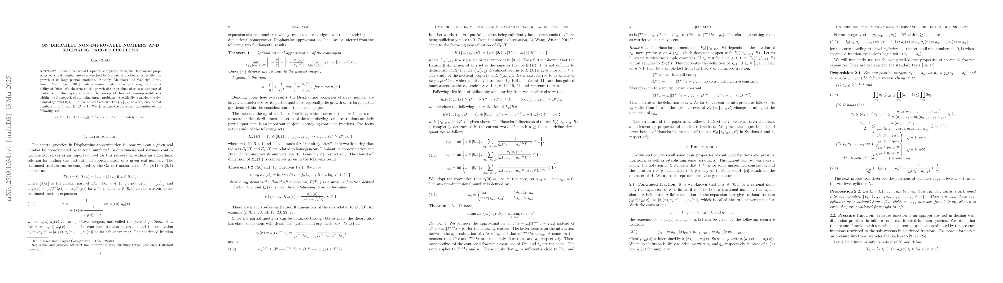 The work extends previous research by Kleinbock and Wadleigh, providing a more comprehensive analysis of the Hausdorff dimension of sets related to Dirichlet non-improvable numbers and shrinking targets.