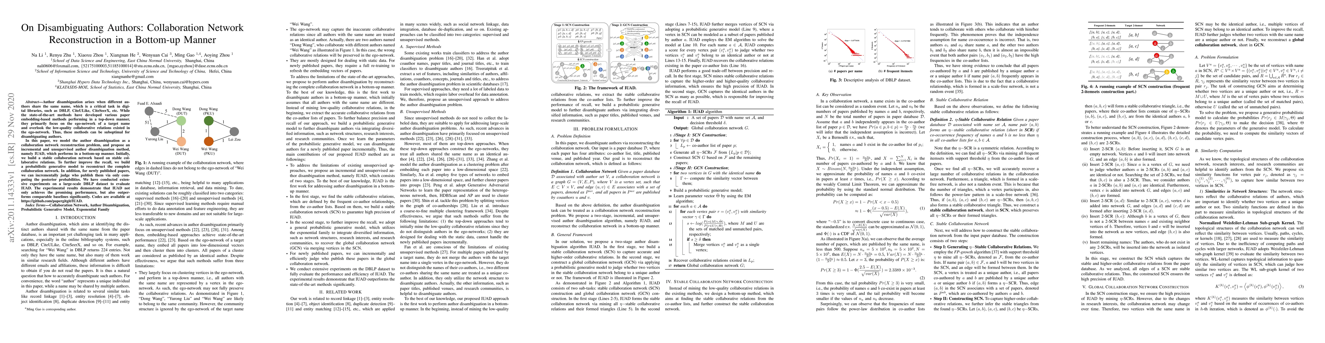 Author disambiguation arises when different authors share the same name, which is a critical task in digital libraries, such as DBLP, CiteULike, CiteSeerX, etc. While the state-of-the-art methods have developed various paper embedding-based methods performing in a top-down manner, they primarily focus on the ego-network of a target name and overlook the low-quality collaborative relations existed in the ego-network. Thus, these methods can be suboptimal for disambiguating authors. In this paper, we model the author disambiguation as a collaboration network reconstruction problem, and propose an incremental and unsupervised author disambiguation method, namely IUAD, which performs in a bottom-up manner. Initially, we build a stable collaboration network based on stable collaborative relations. To further improve the recall, we build a probabilistic generative model to reconstruct the complete collaboration network. In addition, for newly published papers, we can incrementally judge who publish them via only computing the posterior probabilities. We have conducted extensive experiments on a large-scale DBLP dataset to evaluate IUAD. The experimental results demonstrate that IUAD not only achieves the promising performance, but also outperforms comparable baselines significantly. Codes are available at https://github.com/papergitgit/IUAD.