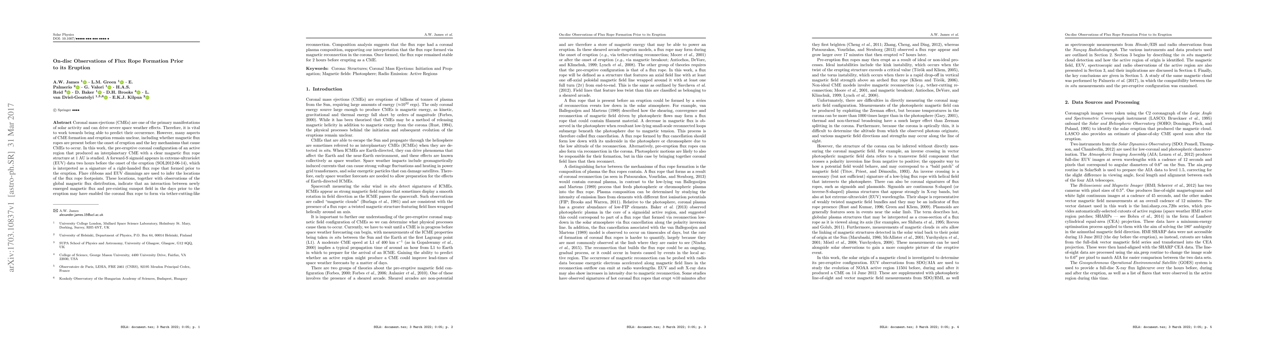 Coronal mass ejections (CMEs) are one of the primary manifestations of solar activity and can drive severe space weather effects. Therefore, it is vital to work towards being able to predict their occurrence. However, many aspects of CME formation and eruption remain unclear, including whether magnetic flux ropes are present before the onset of eruption and the key mechanisms that cause CMEs to occur. In this work, the pre-eruptive coronal configuration of an active region that produced an interplanetary CME with a clear magnetic flux rope structure at 1 AU is studied. A forward-S sigmoid appears in extreme-ultraviolet (EUV) data two hours before the onset of the eruption (SOL2012-06-14), which is interpreted as a signature of a right-handed flux rope that formed prior to the eruption. Flare ribbons and EUV dimmings are used to infer the locations of the flux rope footpoints. These locations, together with observations of the global magnetic flux distribution, indicate that an interaction between newly emerged magnetic flux and pre-existing sunspot field in the days prior to the eruption may have enabled the coronal flux rope to form via tether-cutting-like reconnection. Composition analysis suggests that the flux rope had a coronal plasma composition, supporting our interpretation that the flux rope formed via magnetic reconnection in the corona. Once formed, the flux rope remained stable for 2 hours before erupting as a CME.