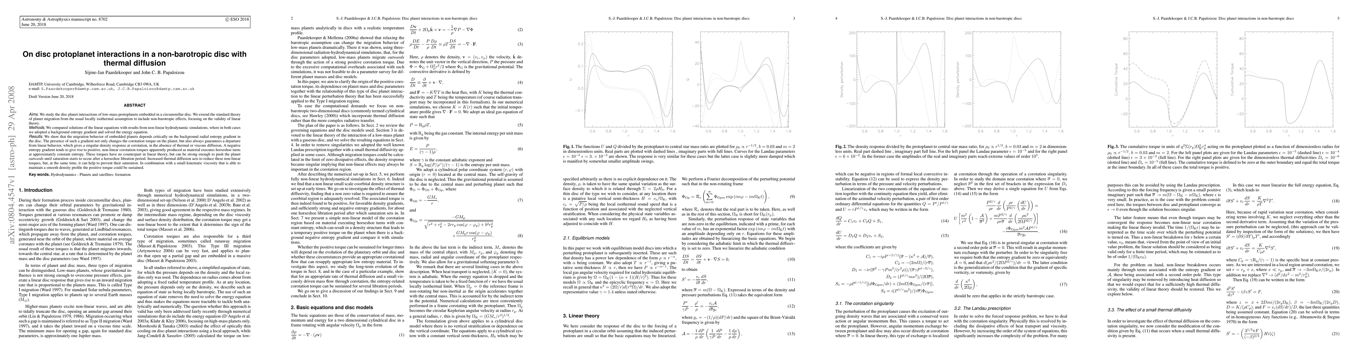 This paper investigates the interactions of low-mass protoplanets within a circumstellar disc, extending the theory of planet migration to include non-barotropic effects and thermal diffusion. It finds that the radial entropy gradient critically influences migration behavior, leading to non-linear corotation torques that can push planets outward, with thermal diffusion mitigating these effects.