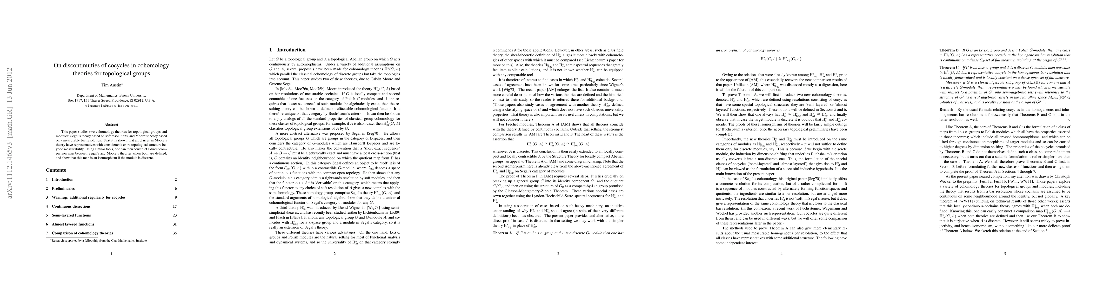 This paper studies Moore's measurable cohomology theory for locally compact groups and Polish modules. An elementary dimension-shifting argument is used to show that all classes in that theory have representatives with considerable extra topological structure beyond measurability. Using this, for certain target modules one can also construct a direct comparison map with a different cohomology theory for topological groups defined by Segal, and show that this map is an isomorphism.