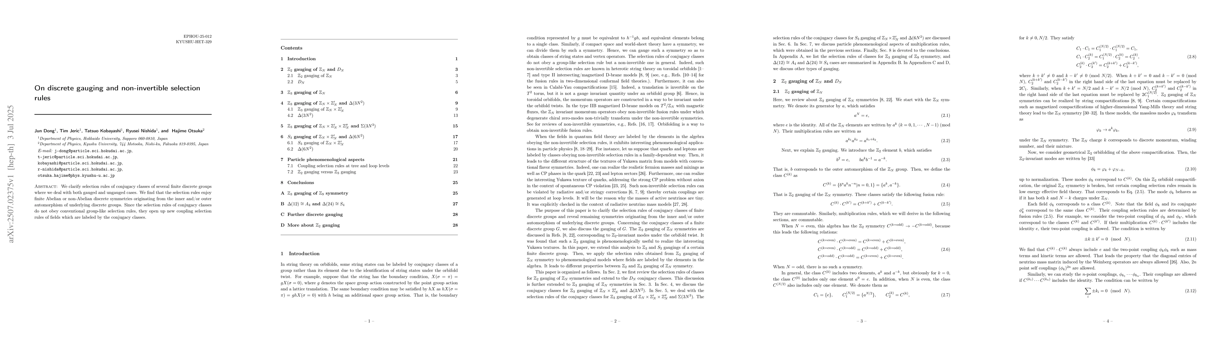 We clarify selection rules of conjugacy classes of several finite discrete groups where we deal with both gauged and ungauged cases. We find that the selection rules enjoy finite Abelian or non-Abelian discrete symmetries originating from the inner and/or outer automorphism of underlying discrete groups. Since the selection rules of conjugacy classes do not obey conventional group-like selection rules, they open up new coupling selection rules of fields which are labeled by the conjugacy classes.