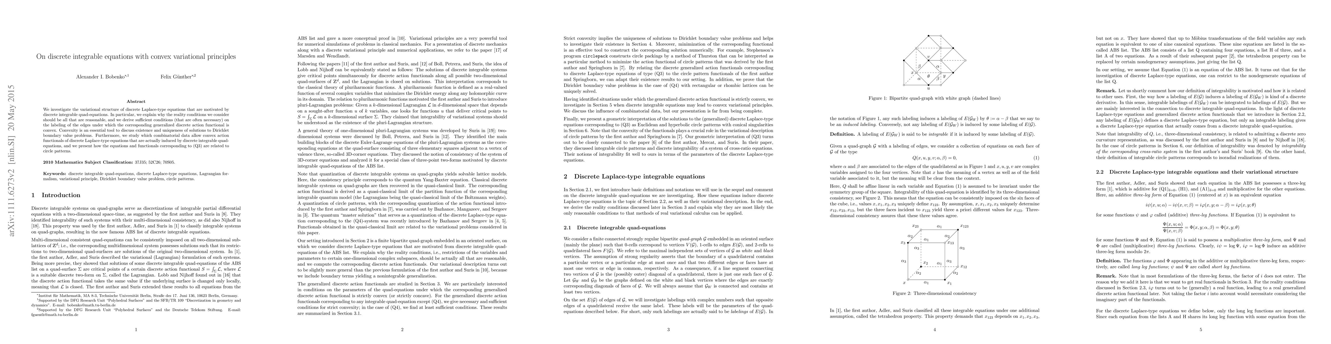 We investigate the variational structure of discrete Laplace-type equations that are motivated by discrete integrable quad-equations. In particular, we explain why the reality conditions we consider should be all that are reasonable, and we derive sufficient conditions (that are often necessary) on the labeling of the edges under which the corresponding generalized discrete action functional is convex. Convexity is an essential tool to discuss existence and uniqueness of solutions to Dirichlet boundary value problems. Furthermore, we study which combinatorial data allow convex action functionals of discrete Laplace-type equations that are actually induced by discrete integrable quad-equations, and we present how the equations and functionals corresponding to (Q3) are related to circle patterns.
