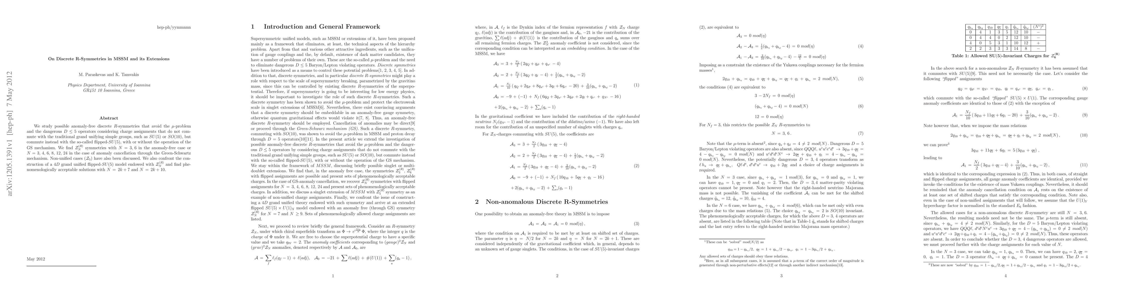 This paper explores anomaly-free discrete R-symmetries in the Minimal Supersymmetric Standard Model (MSSM) and its extensions, focusing on solutions that do not rely on traditional grand unifying groups like SU(5) or SO(10). It identifies viable Z_N symmetries, including N = 3, 6, 4, 8, 12, 24, and discusses non-unified cases like Z_5, ultimately finding acceptable phenomenological solutions for flipped-SU(5) models.