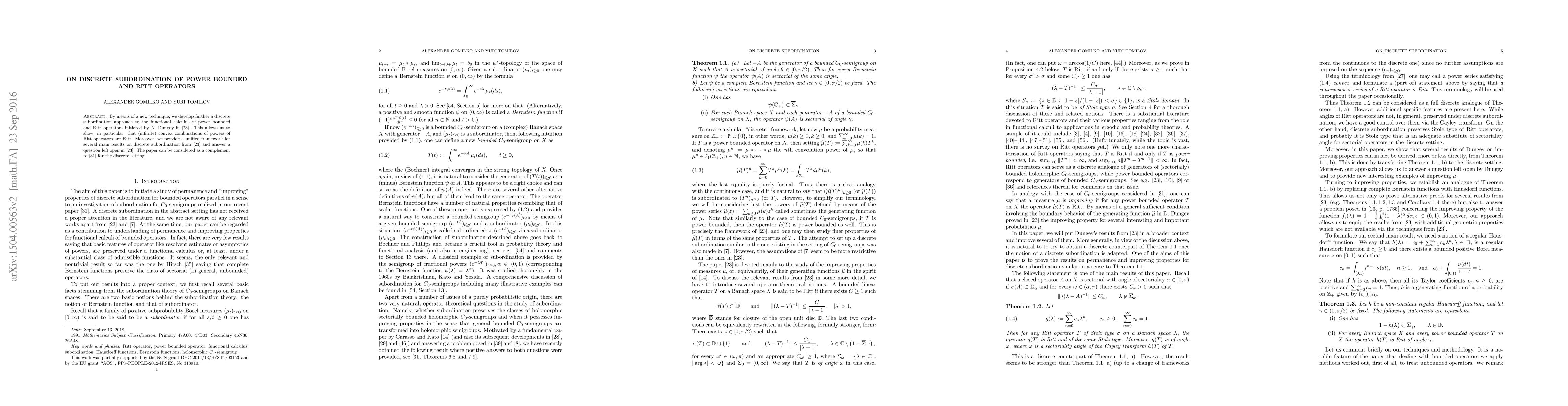 Researchers develop a new technique to extend discrete subordination of power bounded and Ritt operators, proving convex combinations of their powers are also Ritt operators, and providing a unified framework for several main results.