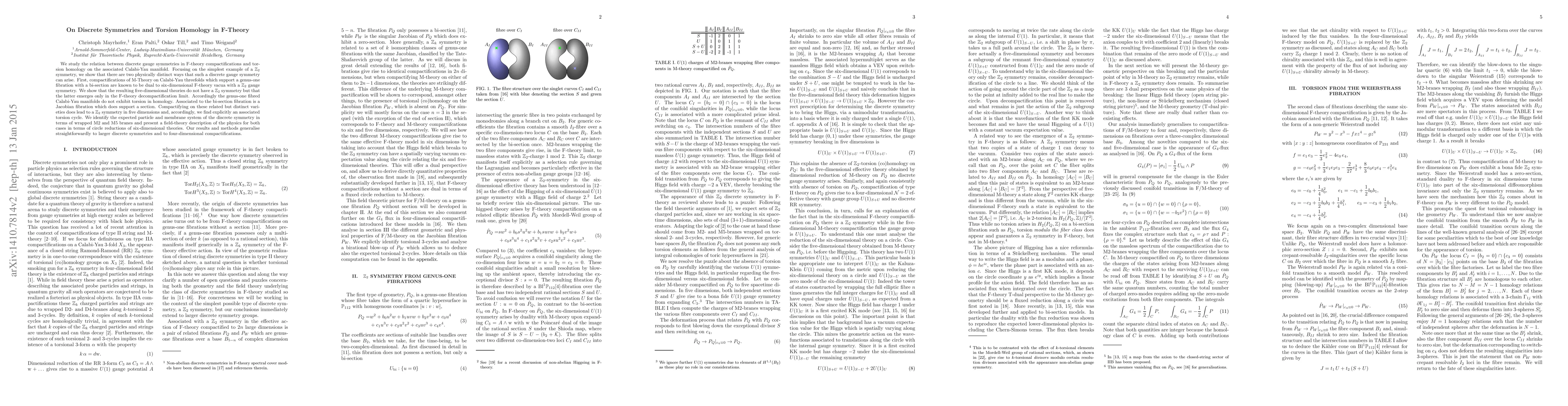 This paper investigates the connection between discrete gauge symmetries in F-theory compactifications and torsion homology in Calabi-Yau manifolds, demonstrating two distinct origins of $\mathbb Z_2$ symmetries and their associated torsion. It concludes that while certain compactifications do not exhibit discrete torsion, others do, with a detailed analysis of M2 and M5 branes.