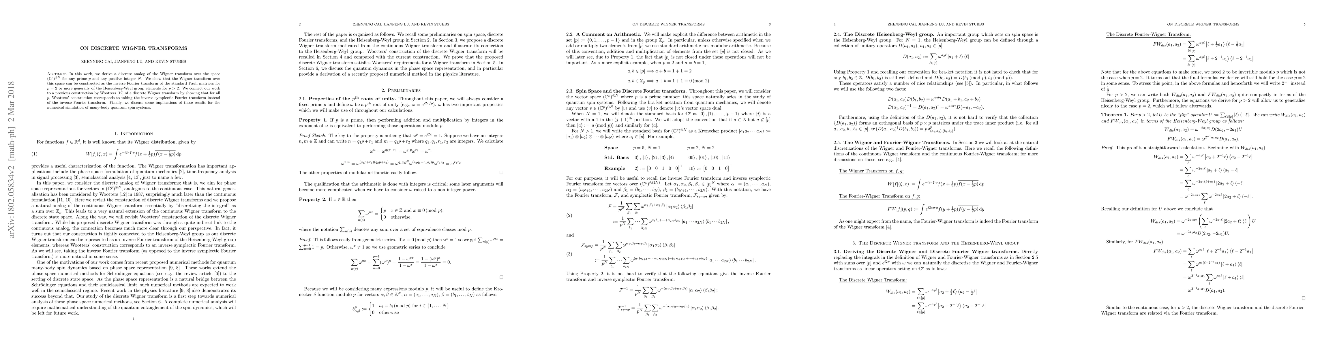 Researchers developed a discrete analog of the Wigner transform for many-body quantum spin systems, connecting it to inverse Fourier transforms of Pauli matrices or Heisenberg-Weyl group elements for simulation purposes.
