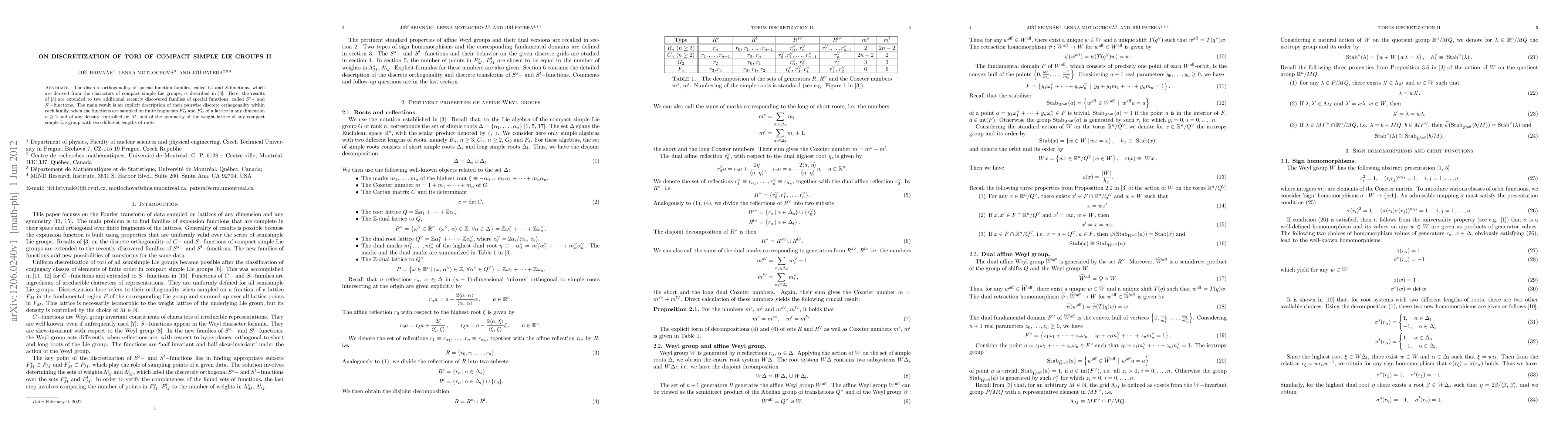 This paper extends the discrete orthogonality results of special function families, $C$- and $S$-functions, derived from compact simple Lie groups to include $S^s-$ and $S^l-$functions. It provides an explicit description of the pairwise discrete orthogonality of these new functions sampled on finite lattice fragments in any dimension and density.