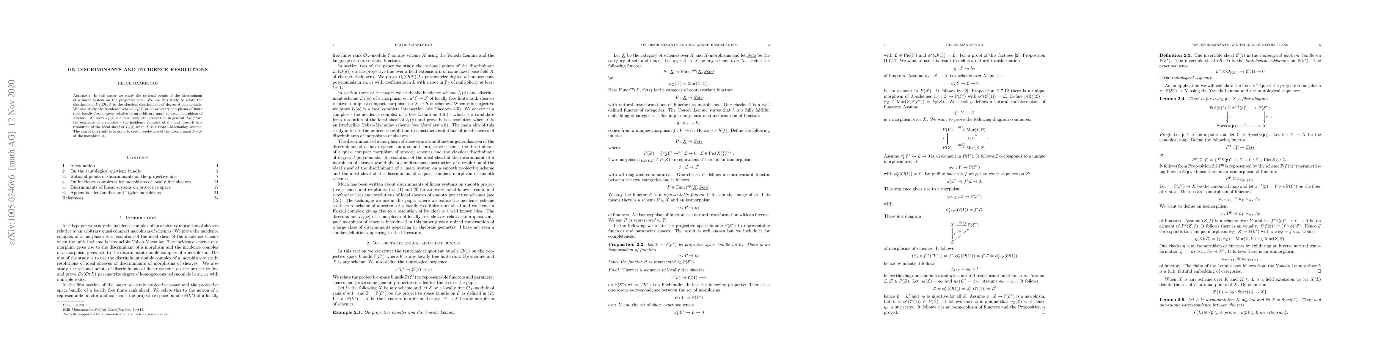 Researchers develop a complex to resolve ideal sheaves of incidence schemes, relating it to classical discriminants in linear systems over projective lines.