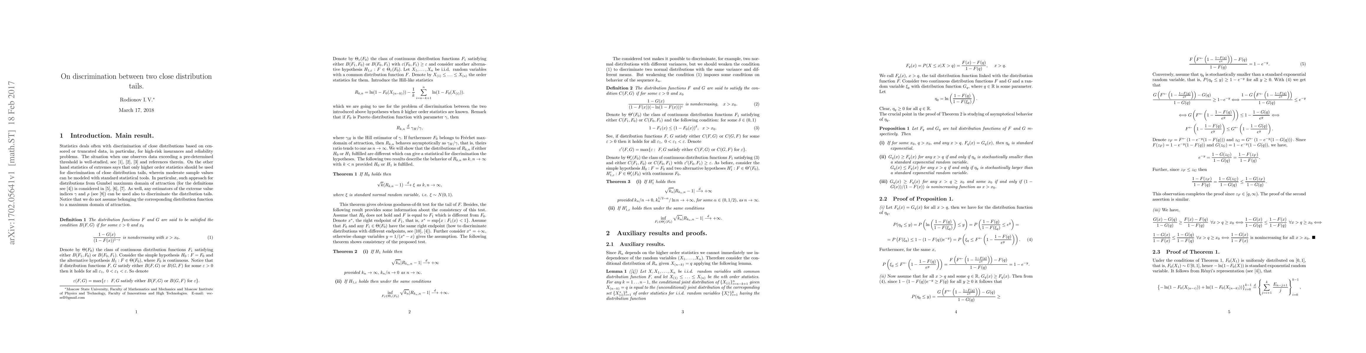 A new test method is proposed to distinguish between two closely related tail distributions without assuming their distribution functions belong to a specific domain of attraction. The test has been proven consistent for two different alternatives.