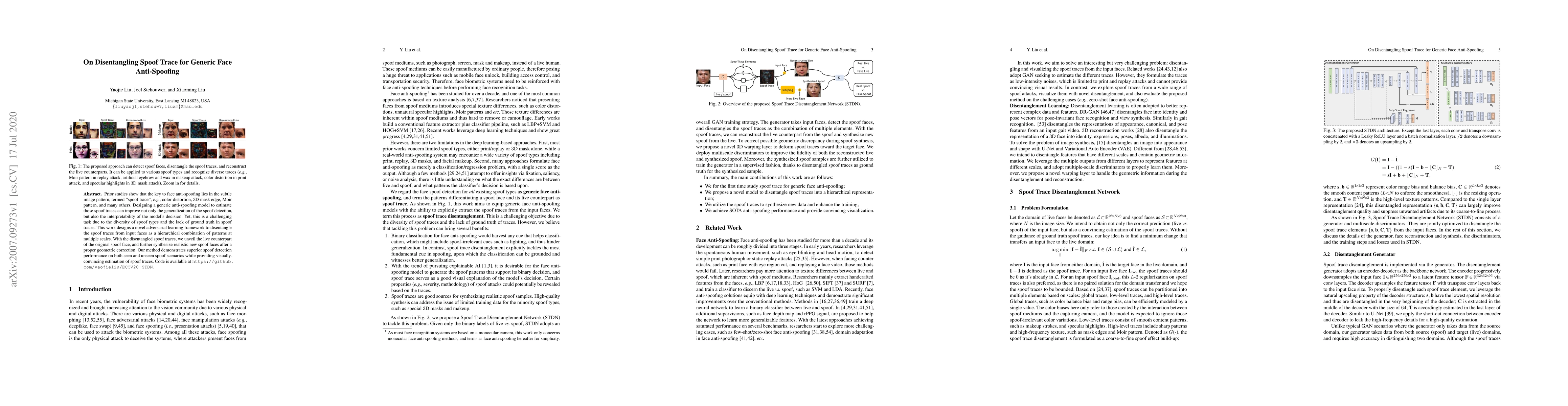 This paper proposes an adversarial learning framework to disentangle spoof traces from face images, improving generic anti-spoofing detection. The method estimates subtle patterns like color distortion and Moire effects, enhancing both model generalization and interpretability.