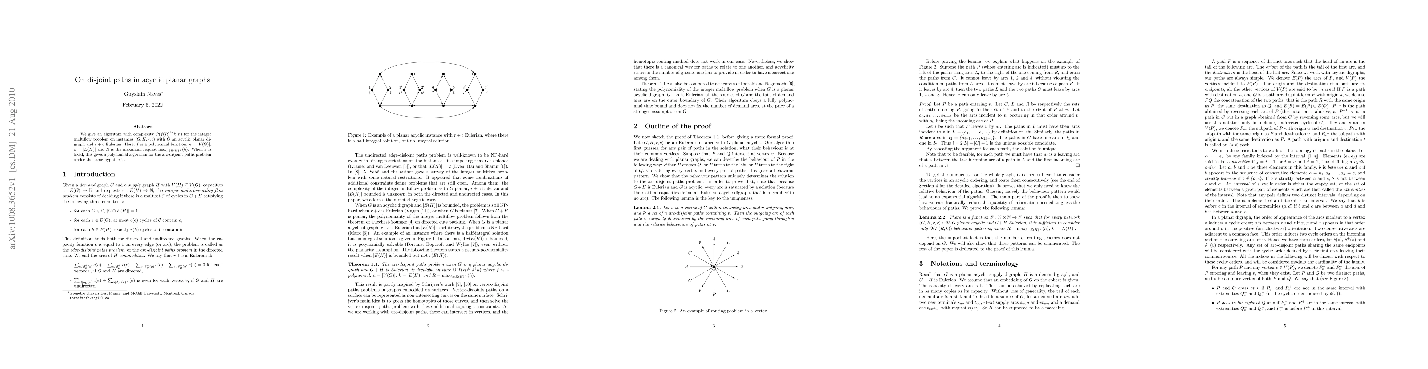 This paper presents an algorithm for solving the integer multiflow problem in acyclic planar digraphs with fixed arc-disjoint paths, achieving polynomial complexity when the number of paths is fixed. The algorithm's complexity is $O(f(R)^{k^2} k^3 n)$.