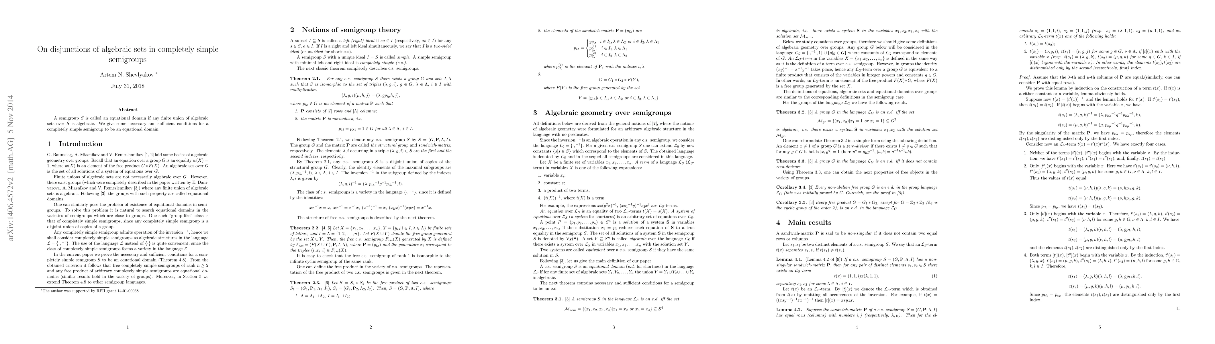 Researchers prove conditions for completely simple semigroups to be equational domains, a property related to algebraic sets in algebraic structures, with implications for understanding and analyzing these systems.