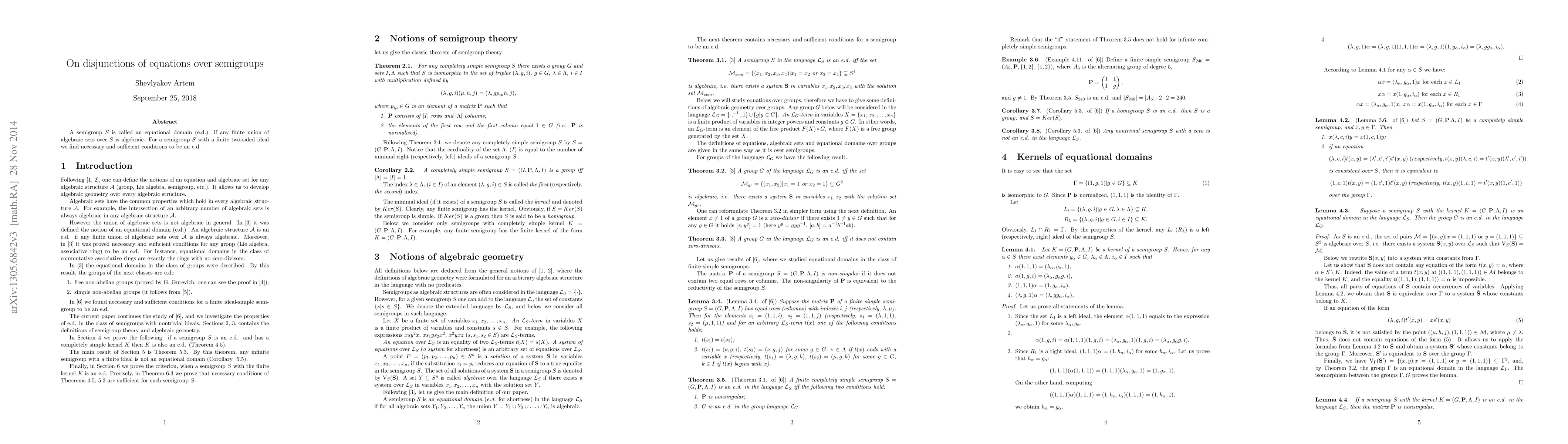 Researchers found conditions for a semigroup to be an equational domain (e.d.), a concept related to algebraic sets, where any finite union is algebraic. The study provides necessary and sufficient criteria for such semigroups with finite ideals.
