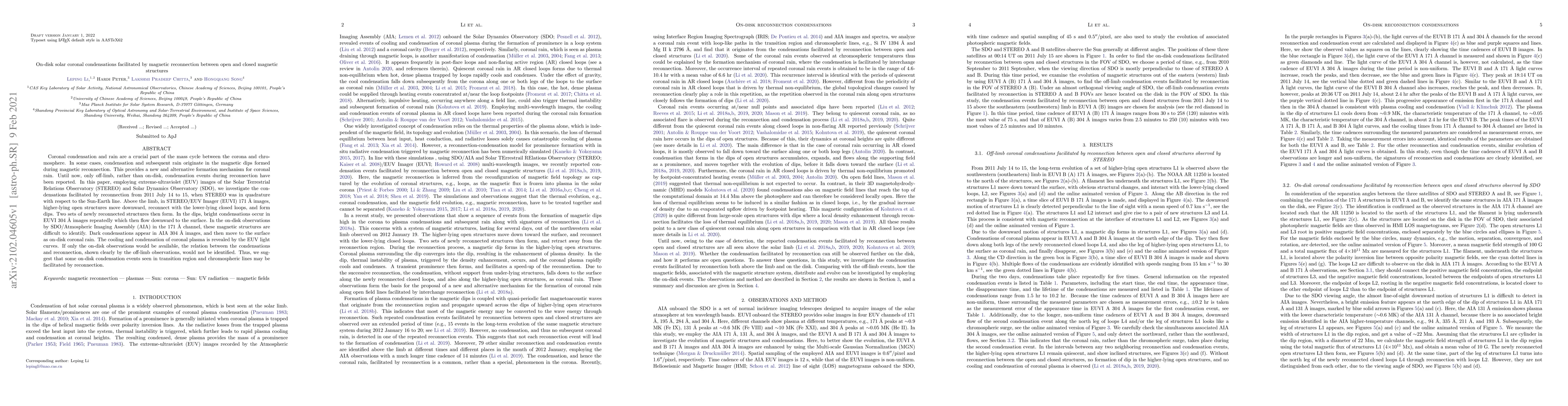 This paper investigates the formation of on-disk solar coronal condensations facilitated by magnetic reconnection between open and closed magnetic structures, using EUV images from STEREO and SDO. It reveals that reconnection-induced condensations, previously only observed off-limb, can also occur on-disk, contributing to coronal rain formation.