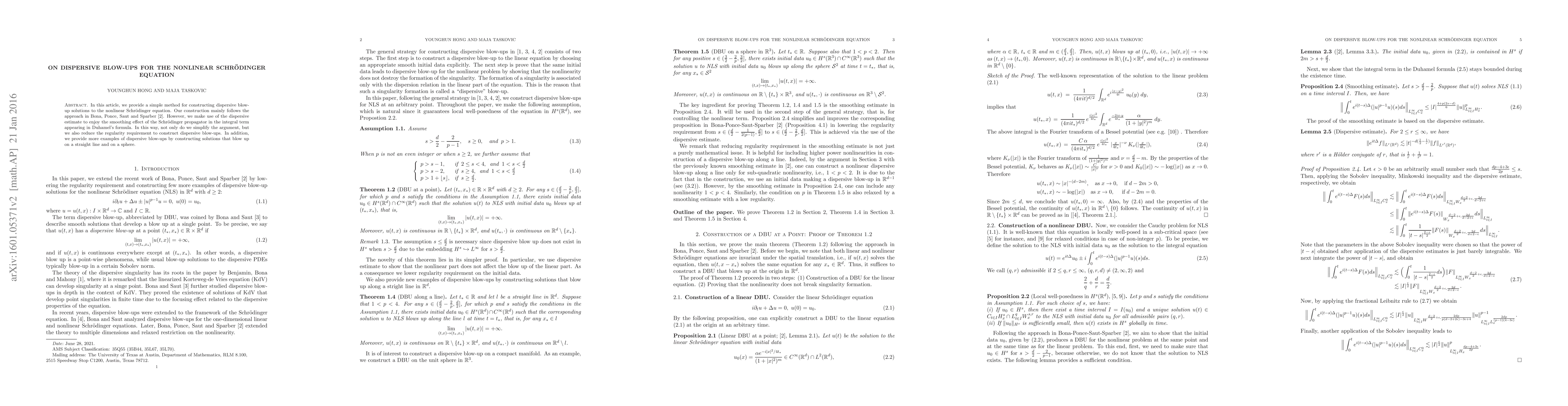This paper presents a simplified method for constructing dispersive blow-up solutions to the nonlinear Schrödinger equation, utilizing the smoothing effect of the Schrödinger propagator to reduce regularity requirements. It also provides examples of blow-ups along straight lines and spheres.