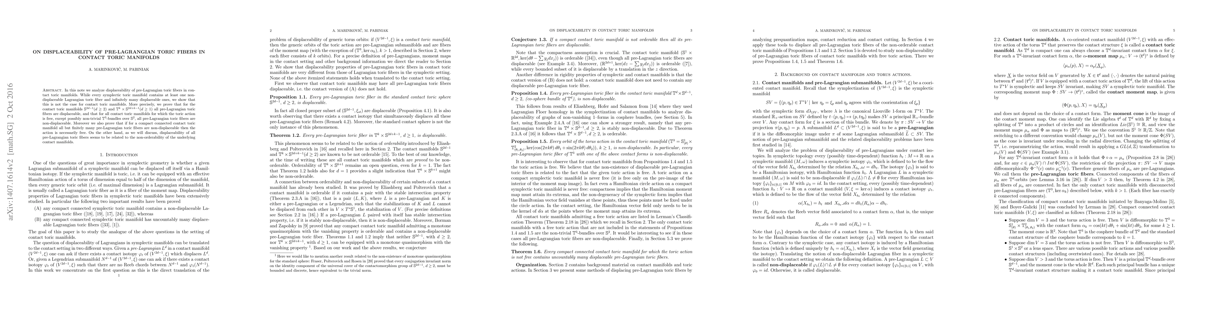 This paper investigates the displaceability of pre-Lagrangian toric fibers in contact toric manifolds, proving that all such fibers in $\mathbb{S}^{2d-1}$ and $\mathbb{T}^k \times \mathbb{S}^{2d+k-1}$ are displaceable, while for free toric actions, fibers are generally non-displaceable except for possibly non-trivial $\mathbb{T}^3$-bundles over $\mathbb{S}^2$. It also links the displaceability of fibers to the non-orderability of the underlying contact manifolds.