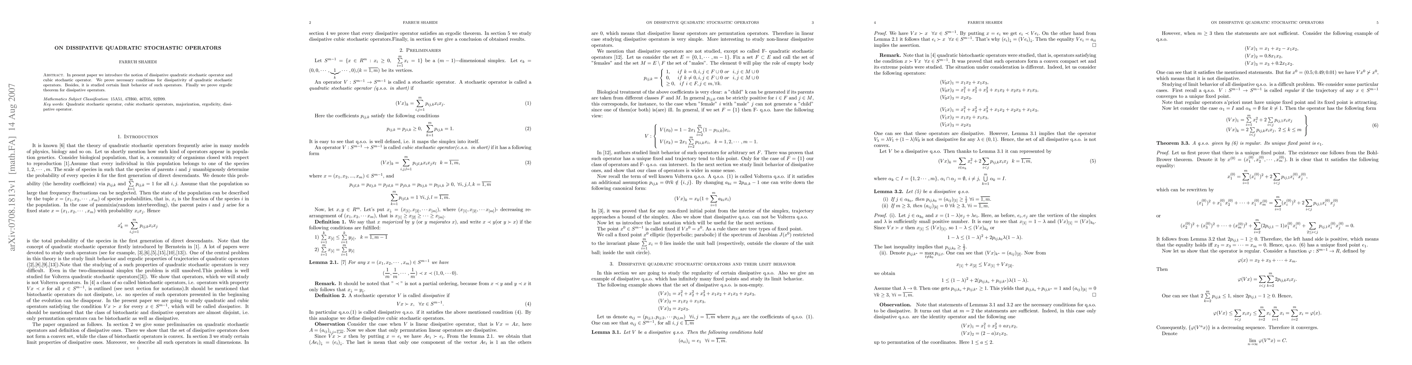 The research introduced a new class of quadratic stochastic operators and proved necessary conditions for their dissipativity and ergodicity.